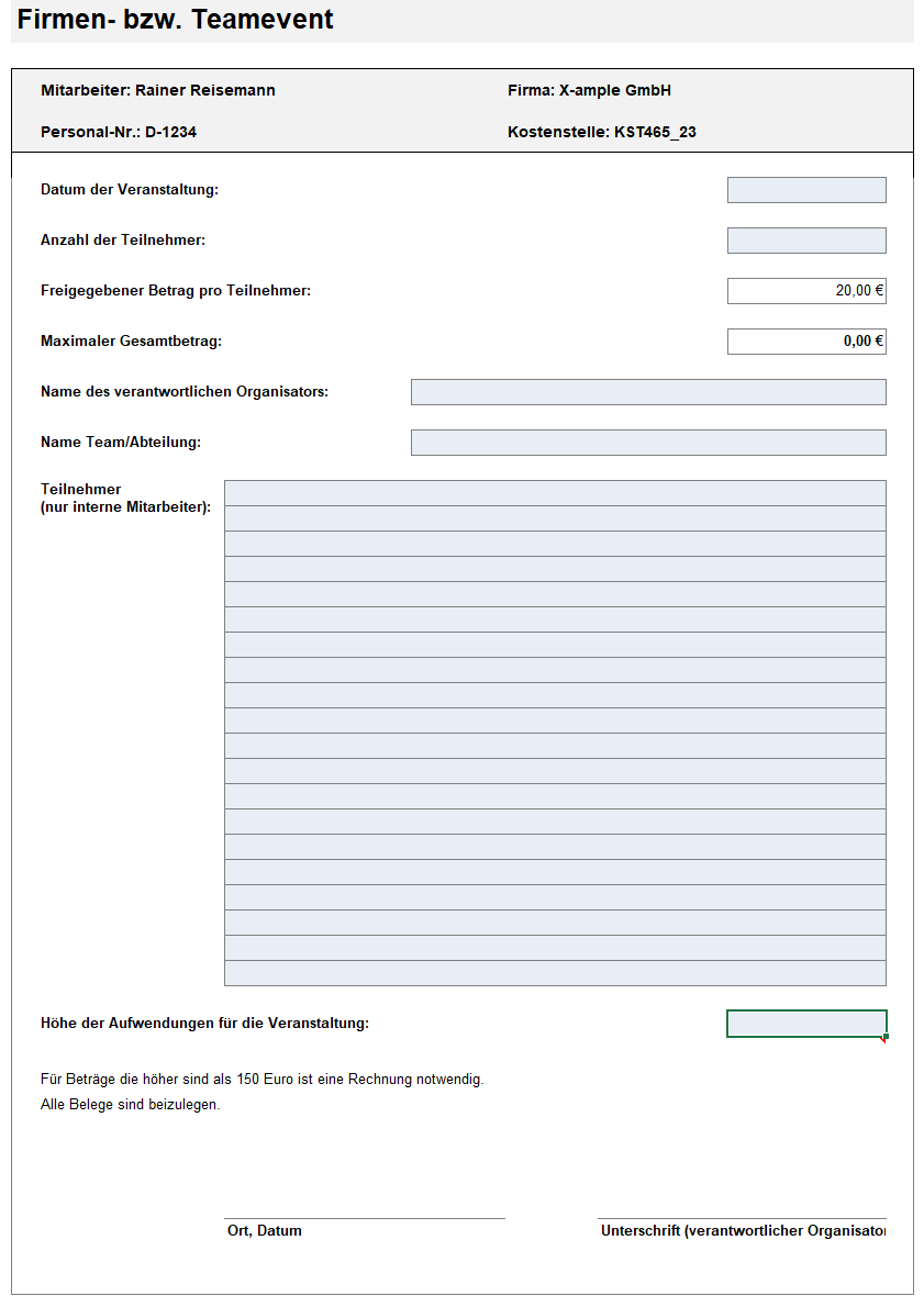 • Eigene Abrechnungsformulare für 1. Bewirtungskosten und 2. Firmenevents