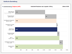 Deckungsbeiträge (DB 1 bis DB 3) und weist ihnen eine etwaige Über- oder Unterdeckung zwischen dem kalkulierten Wert und dem am Markt durchsetzbaren Preis direkt aus. Durch die detaillierte (auch zusätzlich grafisch dargestellte) Aufschlüsselung der Kalkulation können Sie den Unterschiedsbetrag schnell analysieren und ggf. ihr Angebot bzw. ihren Preis überarbeiten.