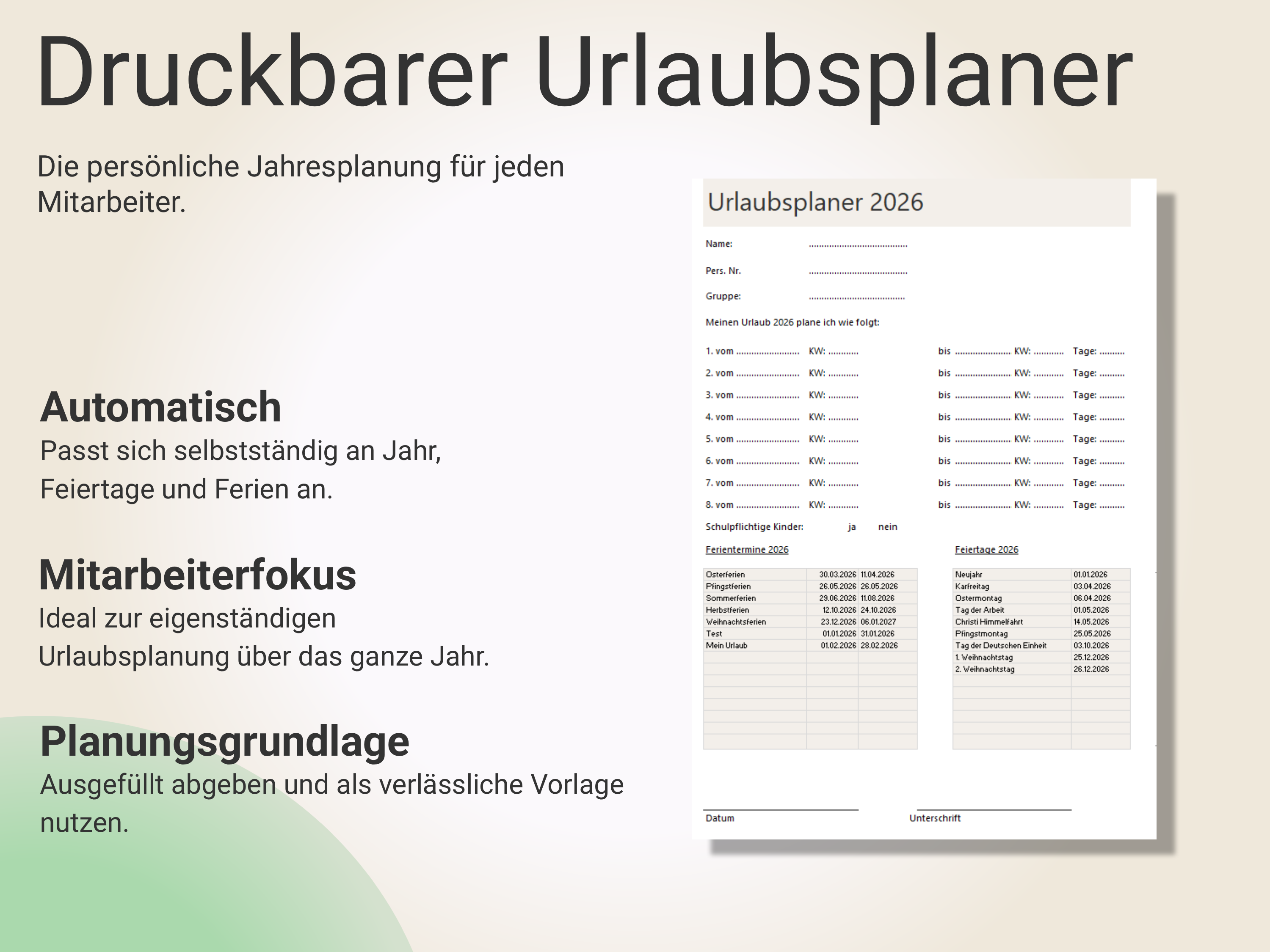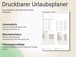 ✔ Ausdruckbare Urlaubsübersicht für Mitarbeiter